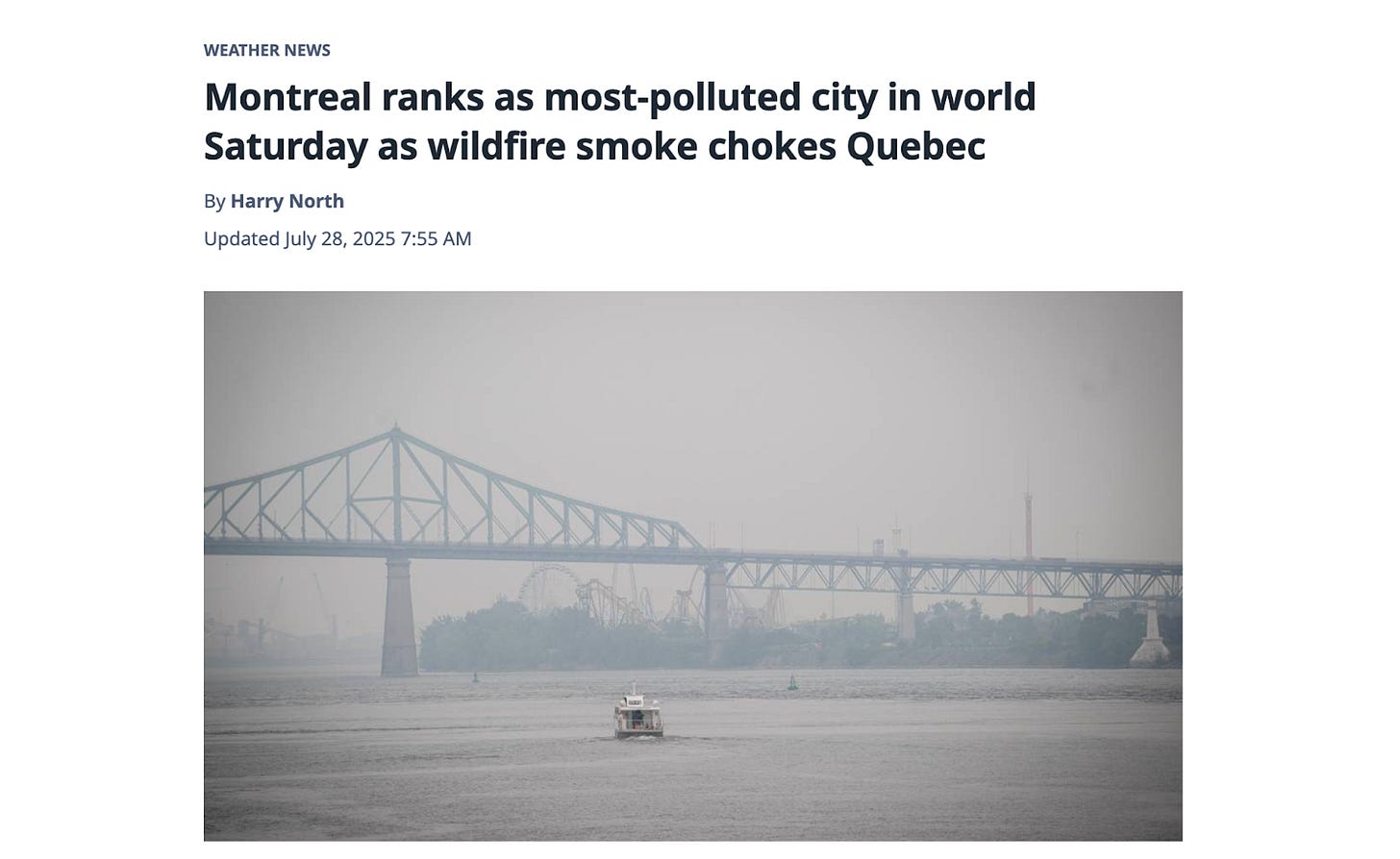 The internet was aflame with memes and photos, people shouting into their screens that “Montreal has the worst air quality of any major city on earth,” sending each other screenshots of headlines, of AQI ratings in their weather apps.