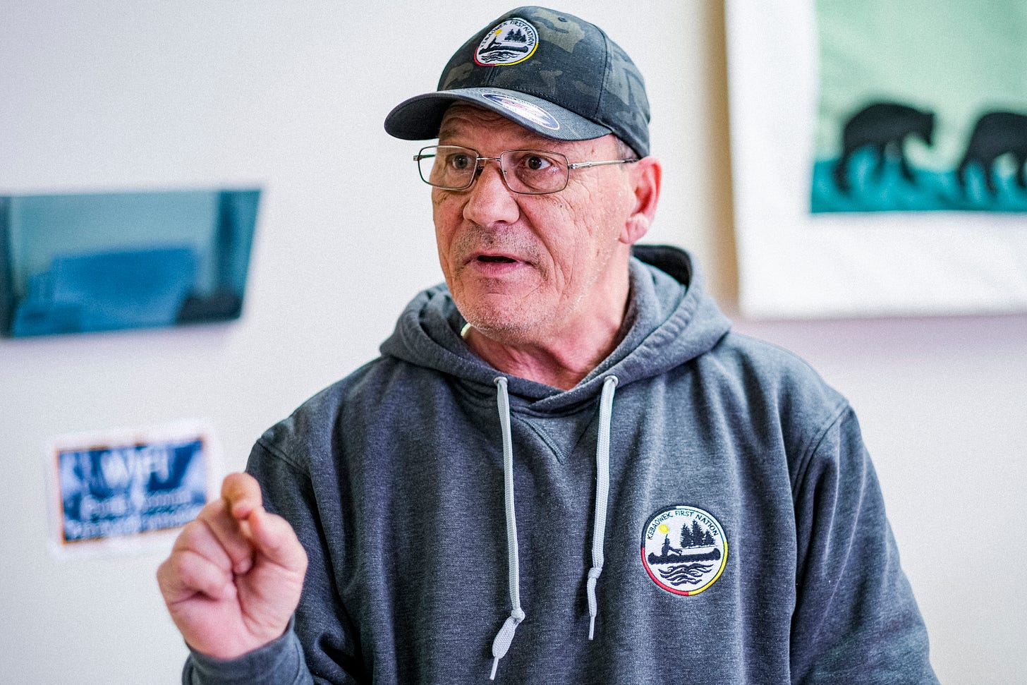 photo of chief Lance Haymond, Kebaowek, by Isaac Peltz